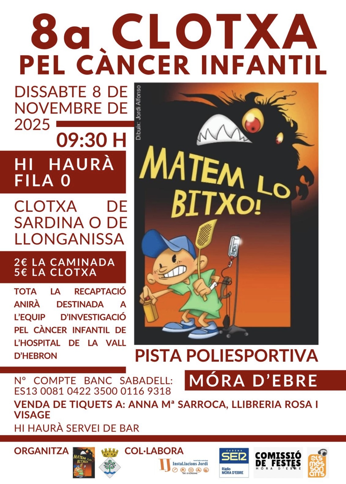 Tota la recaptació anirà destinada íntegrament a l’equip d’investigació pel càncer infantil de l’Hospital de la Vall d’Hebron.