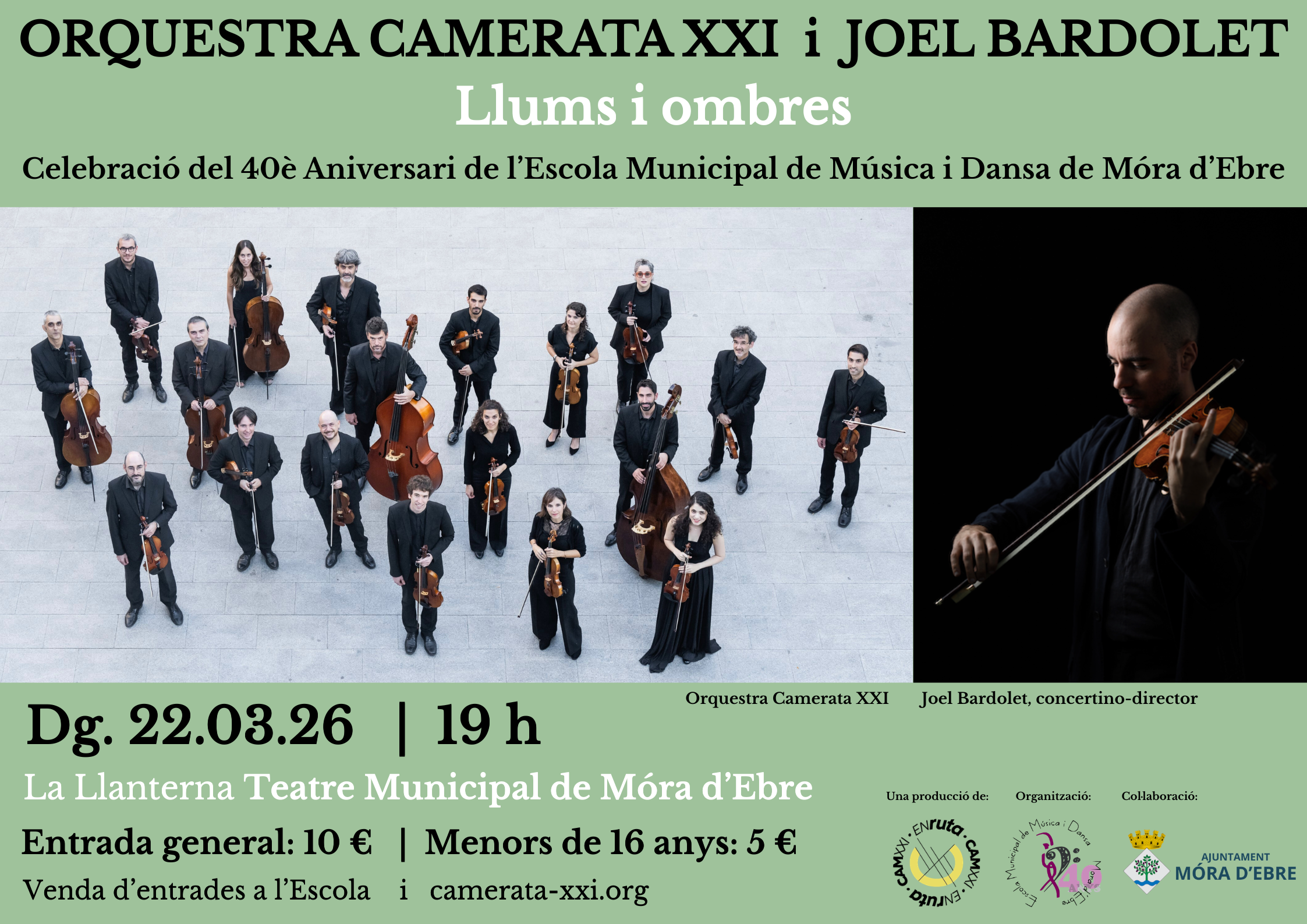L’Orquestra Camerata XXI, juntament amb el violinista i concertino-director Joel Bardolet, presenta el concert “Llums i ombres”, una proposta musical especial que forma part de la celebració del 40è aniversari…