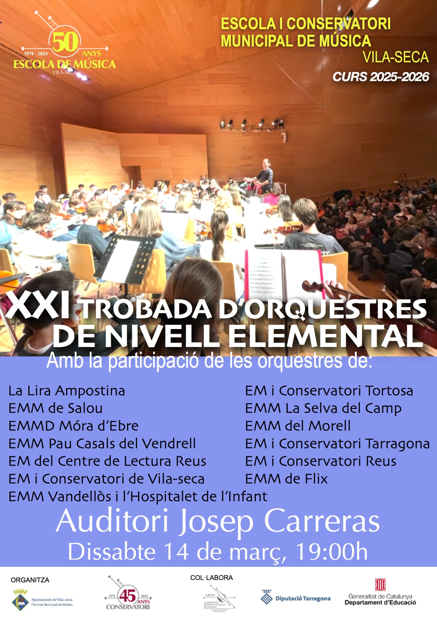 L’Escola i Conservatori Municipal de Música de Vila-seca organitza la XXI Trobada d’Orquestres de Nivell Elemental, una activitat que reunirà estudiants d’orquestra de diverses escoles de música del territori en…