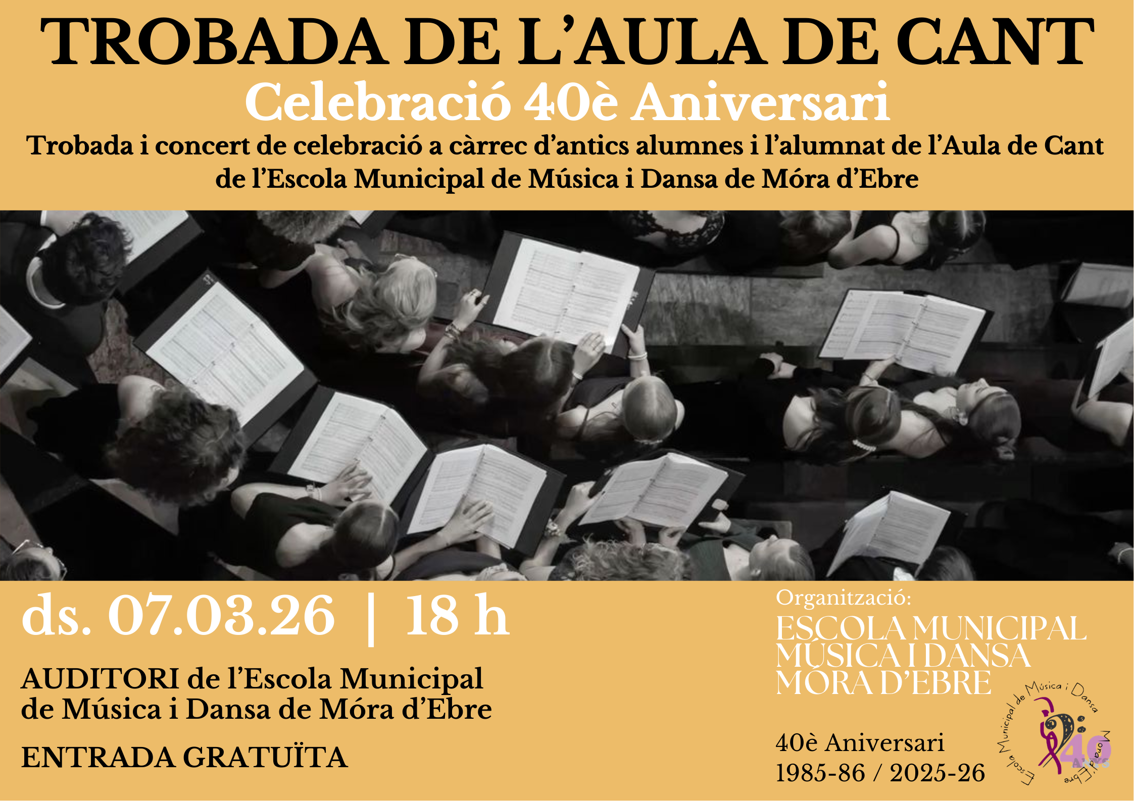 La Trobada de l’Aula de Cant és una activitat especial organitzada per l’Escola Municipal de Música i Dansa amb motiu de la celebració del 40è aniversari del centre. Aquesta trobada…
